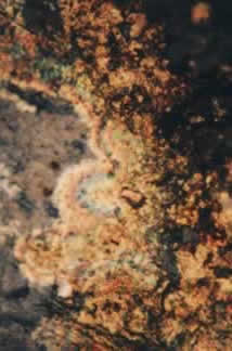 Careful microscopic exam of paint flakes showed rust particles and Newton rings (generally associated with oil slicks on water, thin films). Further exam showed micro sized oil droplets on the flakes. Drawing fluid used for manufacturing was found to be an aqueous based oil emulsion. This was not washed properly from the parts.